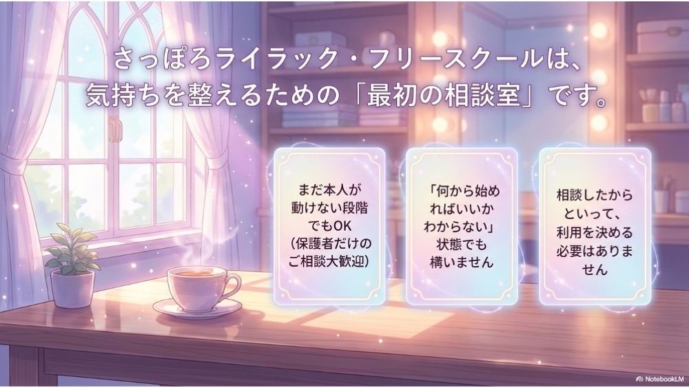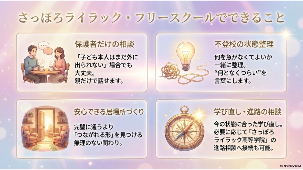 それが、さっぽろライラック・フリースクールの不登校相談です。