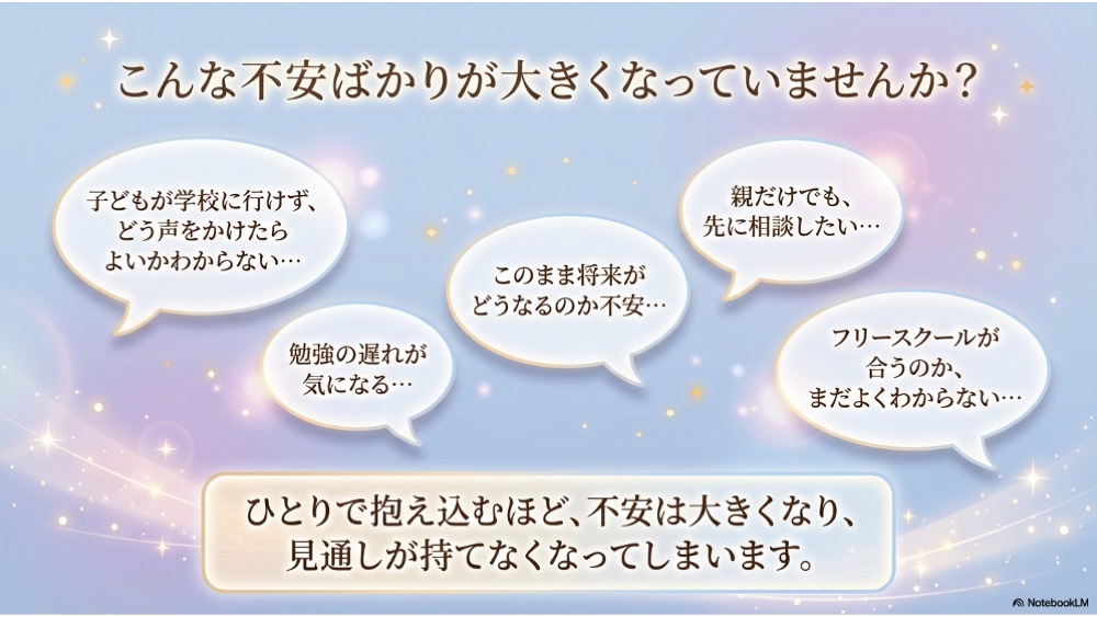- 子どもが学校に行けず、どう声をかけたらよいかわからない