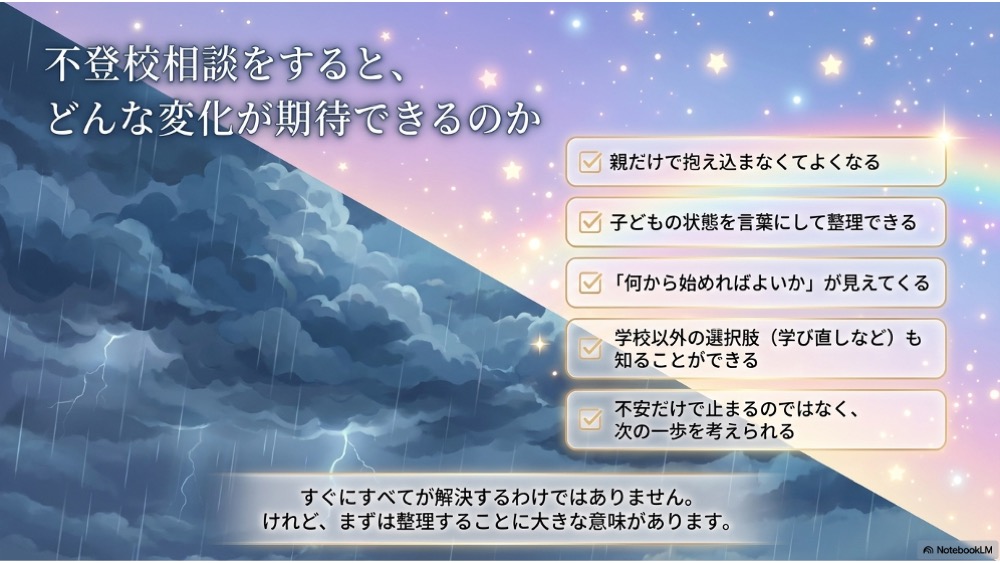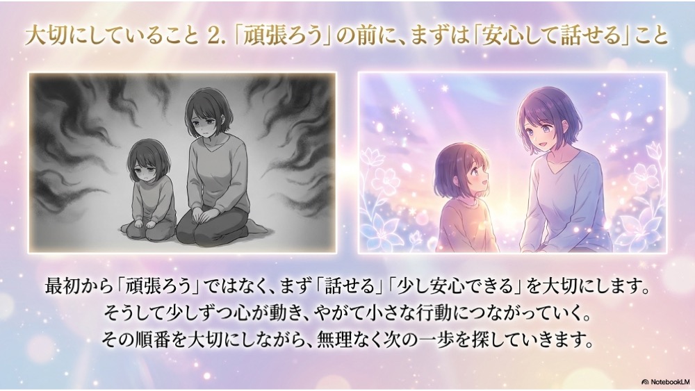 - 不安だけで止まるのではなく、次の一歩を考えられる