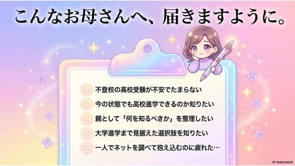 不登校の高校受験は、一般的な受験情報だけでは足りません。