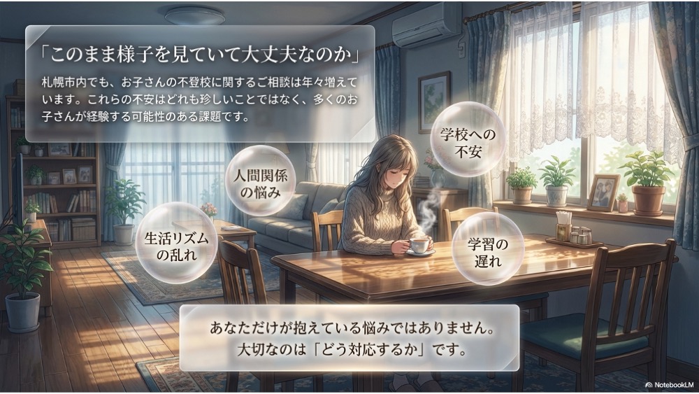 札幌でお子さんの不登校について悩まれている保護者の方から、近年とても多くのご相談をいただいています。