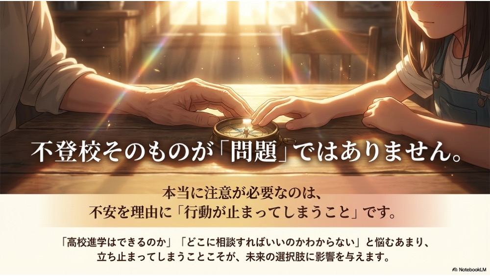 ですがまずお伝えしたいのは、不登校そのものが問題なのではないということです。