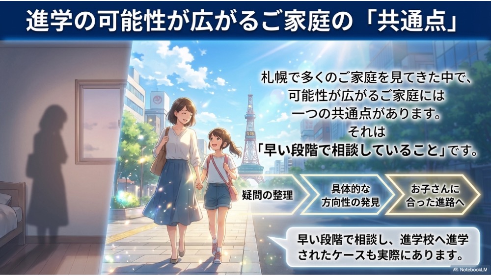 札幌でも実際に多くのご家庭を見てきましたが、進学の可能性が広がるご家庭には共通点があります。