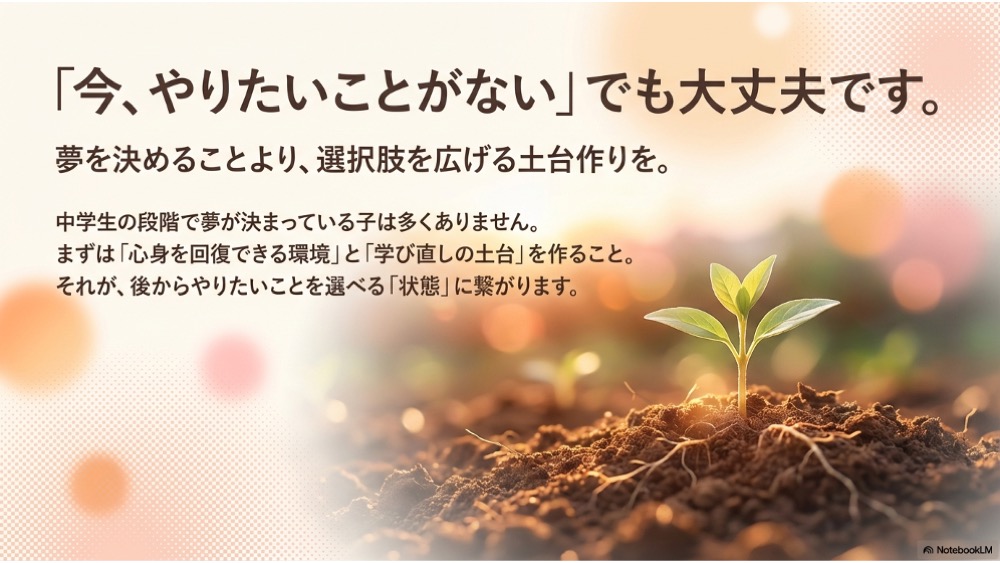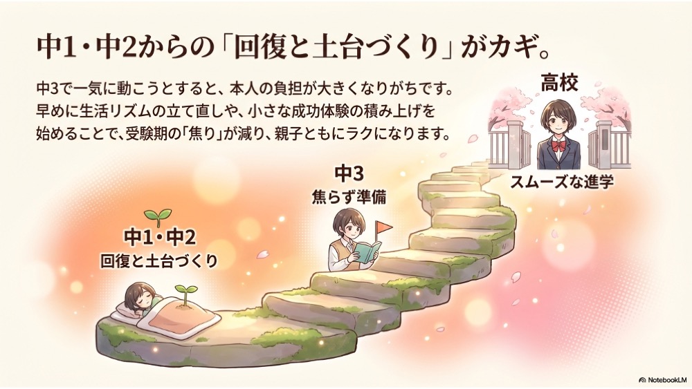 中1・中2のうちから「回復と土台づくり」を始めると、選択肢が増えます