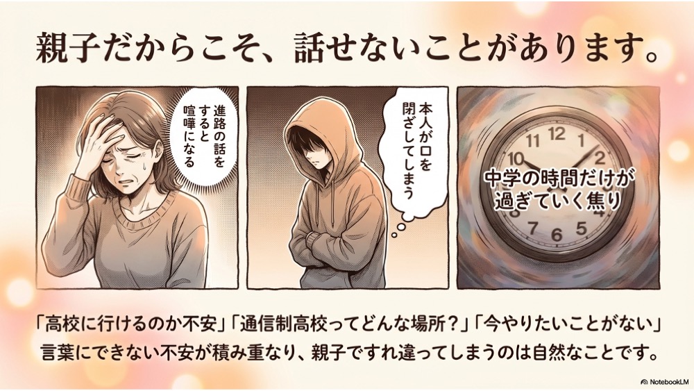 中学生のお子さんが不登校になると、進路の話はどうしても苦しくなります。