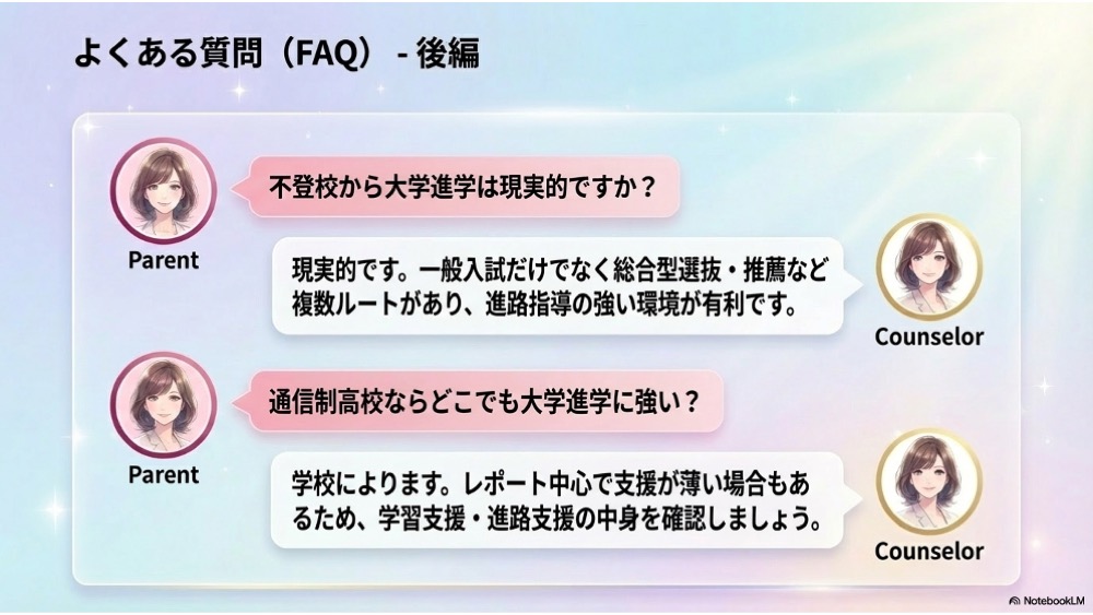 • 高校進学の設計:高校受験・通信制高校など“ルート”を確保する