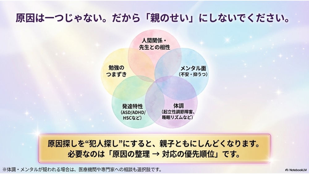 原因探しを“犯人探し”にすると、親子ともにしんどくなります。
