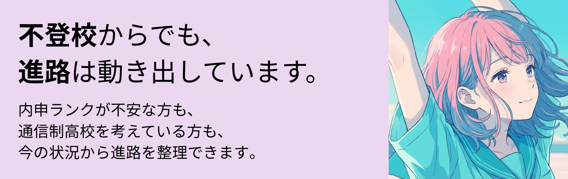 このまま不登校の状況からでも進路を整理できます。 高校進学・転学・大学進学まで、今の状況から一緒に整理します。 不登校の「知らないと高校受験で損をする情報」をLINEで受け取る