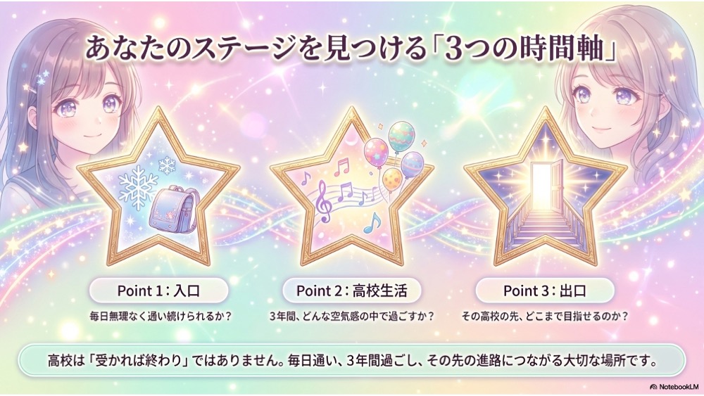 なぜなら、高校は「受かれば終わり」の場所ではなく、毎日通い、3年間過ごし、その先の進路にもつながる場所だからです。
