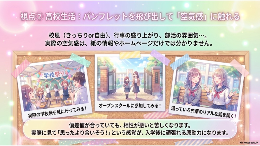 しかし、実際の高校生活の空気感は、紙の情報だけではなかなか分かりません。