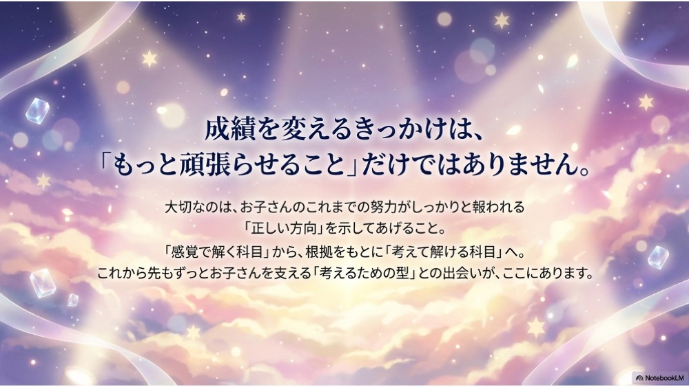 お子さんに今必要なのが暗記の量なのか、考え方の型なのかを整理してみませんか。