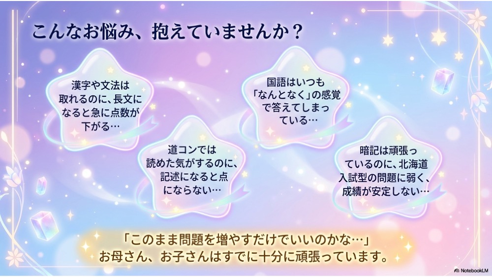 - 国語だけでなく、英語長文や資料問題にもつながる学び方が必要かどうか