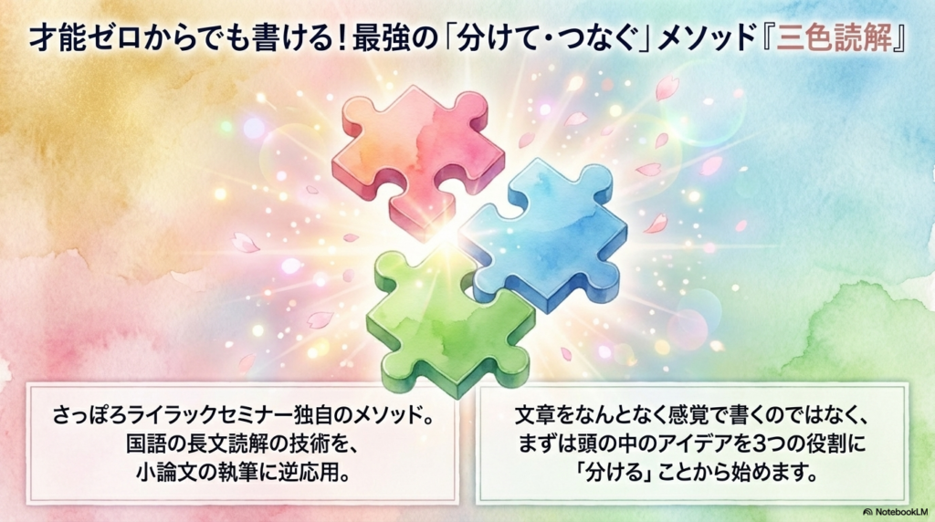 才能ゼロからでも書ける!『三色読解』を応用した最強の「分けて・つなぐ」型